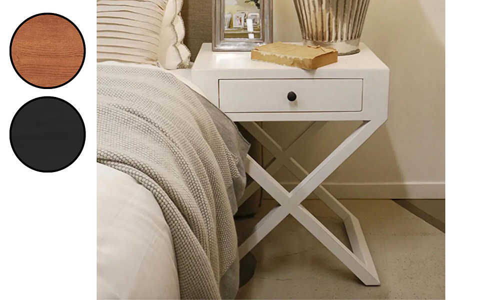 The clean lines and single drawer design offer just the right balance of form and function, while the distinctive crossed legs add architectural interest that elevates it beyond your average bedside table. Perfect for creating that serene beach house vibe, even if the nearest beach is just your shower!