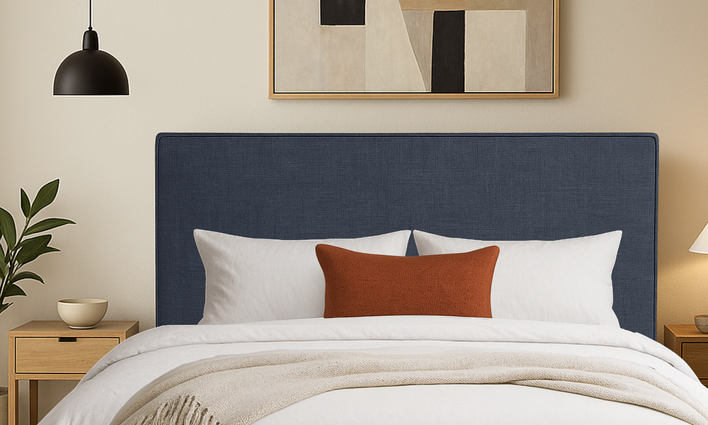 Sculptural in form and tailored in finish, the Benson Headboard is a refined statement piece. With its bold, structured silhouette, clean lines, and piped edging, it brings a crisp, contemporary edge to any bedroom. Upholstered in the same premium Linen Look fabric as our bestselling Delphine, the Benson delivers elevated simplicity with timeless appeal and versatile charm.