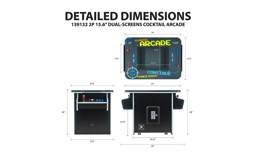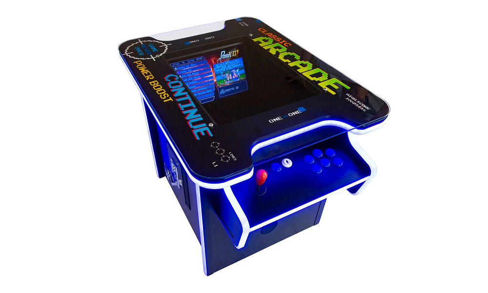 Titles include Pac-Man, Galaga, Donkey Kong, Frogger, Street Fighter, Metal Slug, Track and Field and many more. From chasing ghosts and dodging barrels to pulling off epic combos and smashing high scores, this Cocktail Arcade Table is packed with all the legends that defined a generation of gaming. Click here to see all games!