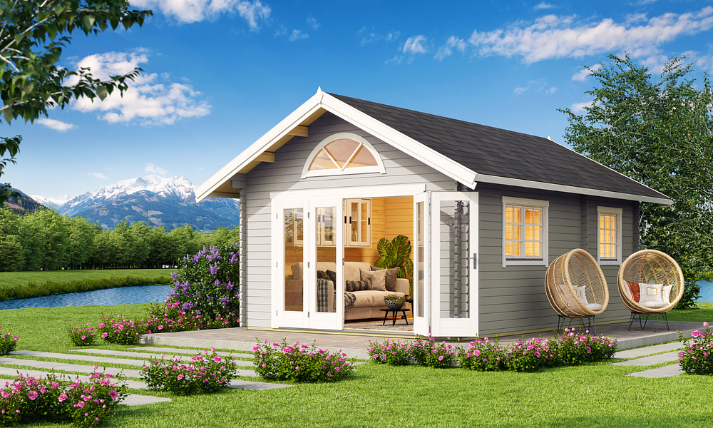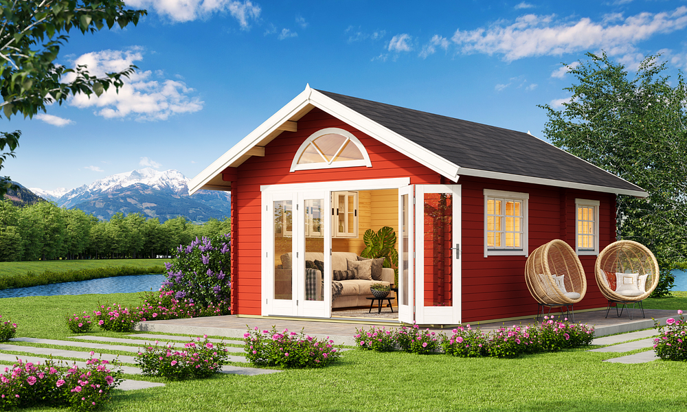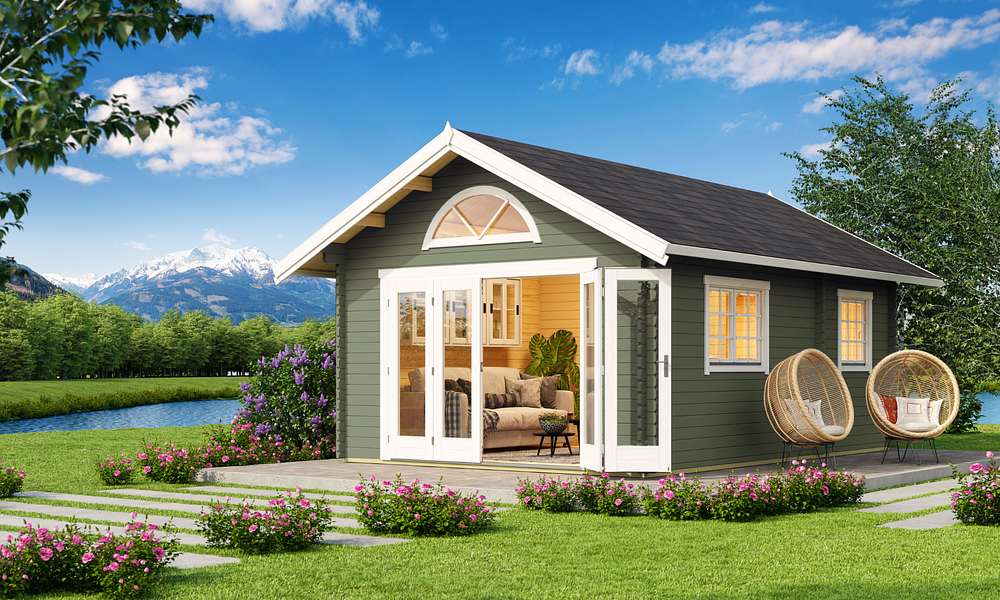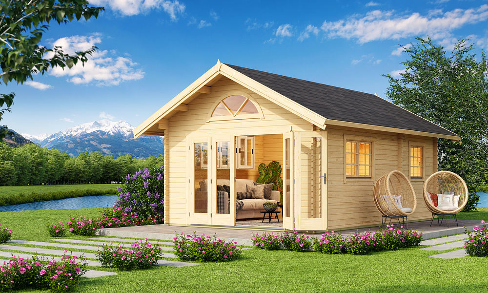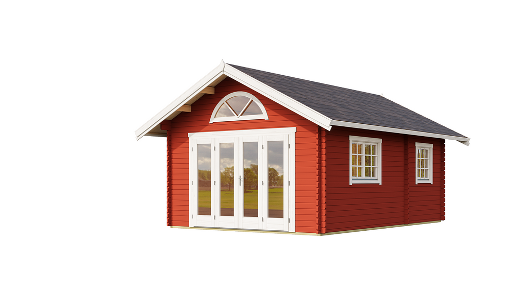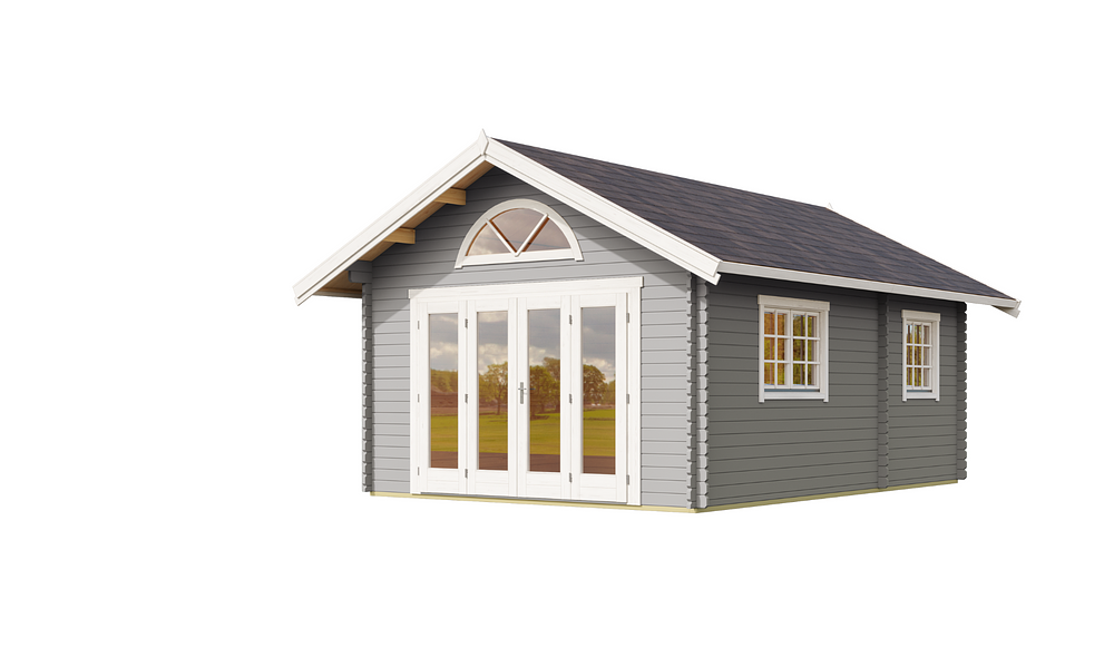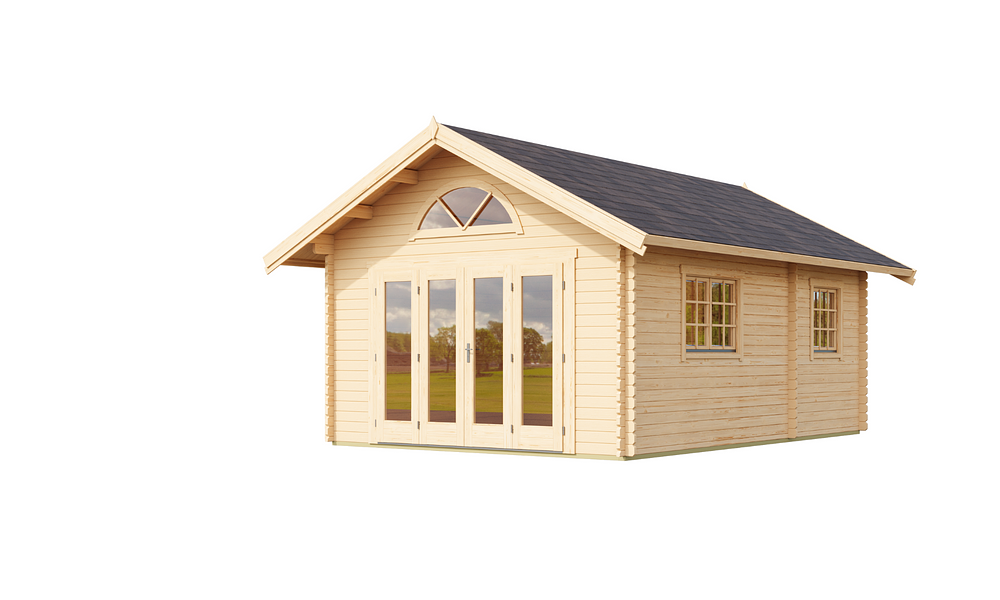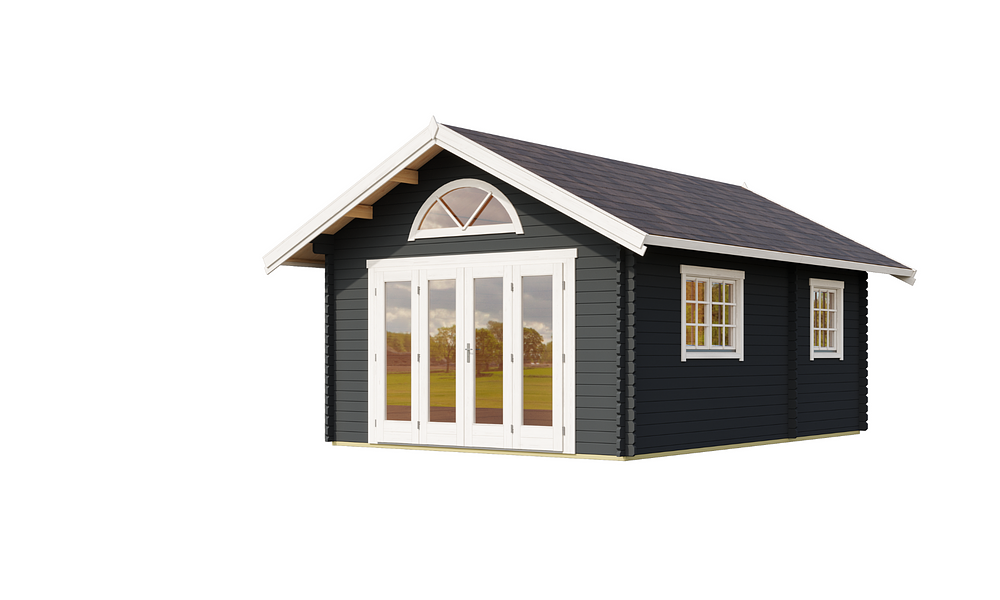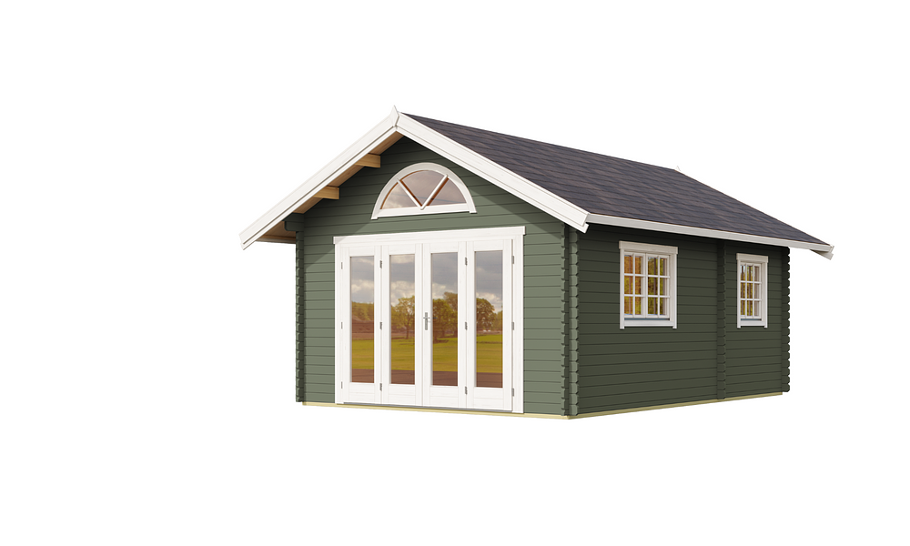 The Cove Cabin range is crafted from 40mm thick Nordic spruce, kiln-dried for superior durability and weather resistance. Designed with a classic pitched roof, it offers a spacious and versatile layout with three rooms plus a loft, making it the perfect holiday retreat. A glazed bi-fold door creates a seamless indoor-outdoor feel, while additional doors and well-placed windows fill the space with natural light. With lockable doors, flooring, and a weatherproof Onduline, felt, and shingles roof, the Cove Cabin is built for comfort and style all year round.