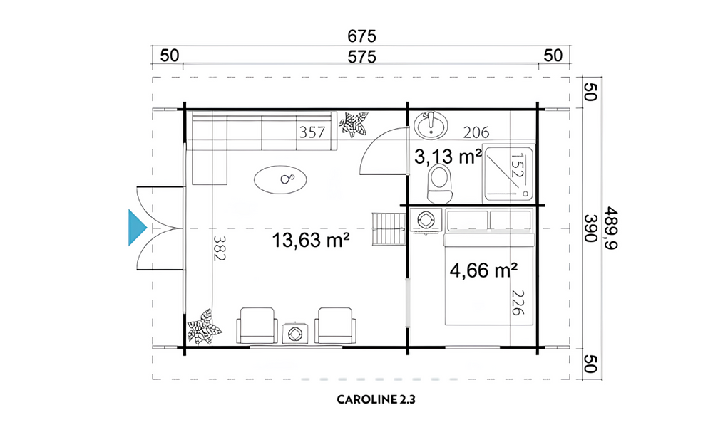 - Roof Overhang: 50cm