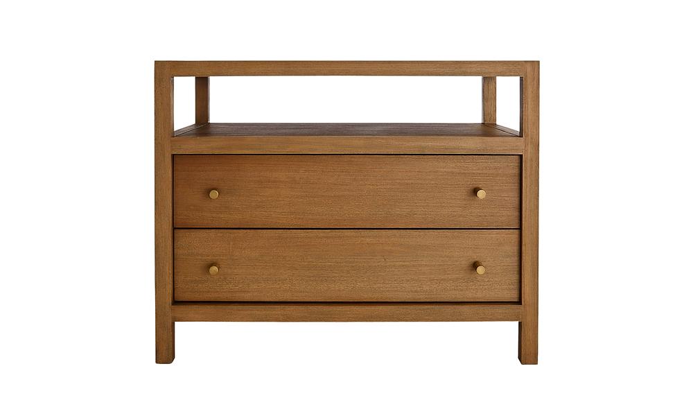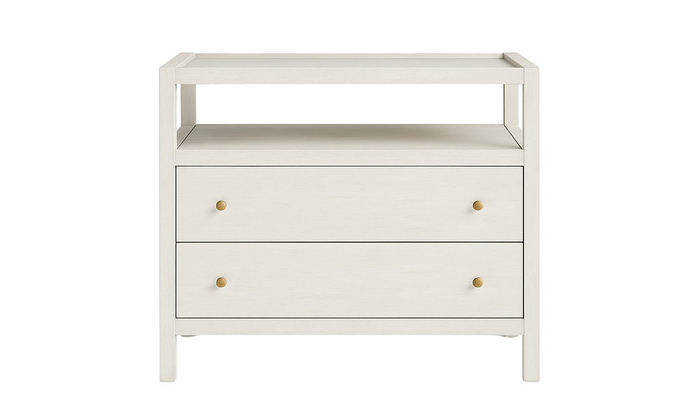 With deep drawers, an open shelf for your current read (or your phone you “never” check at 2am), and a top surface begging for a beautiful lamp, this piece isn’t just functional, it’s furniture with main-character energy.
