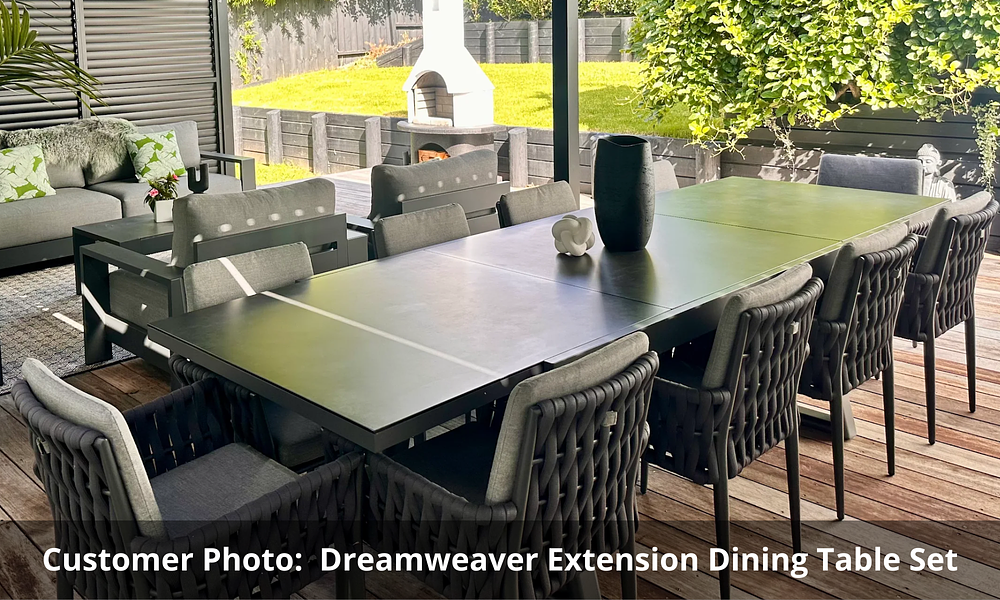 Create an inviting and elegant dining space with this exceptional set that seamlessly blends form and function. The focal point of the DreamWeaver set is its stunning extension dining table which can extend from 2 metres long to 3 metres long, meaning you can chop and change depending on how many guests you have or if you just simply want some more space! This table is accommodated by 8 chairs, of which feature the eye-catching Dream Weaver rope design, so you won't have to worry about space or style!
