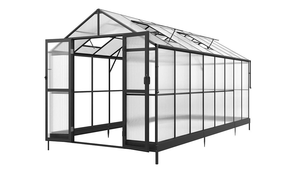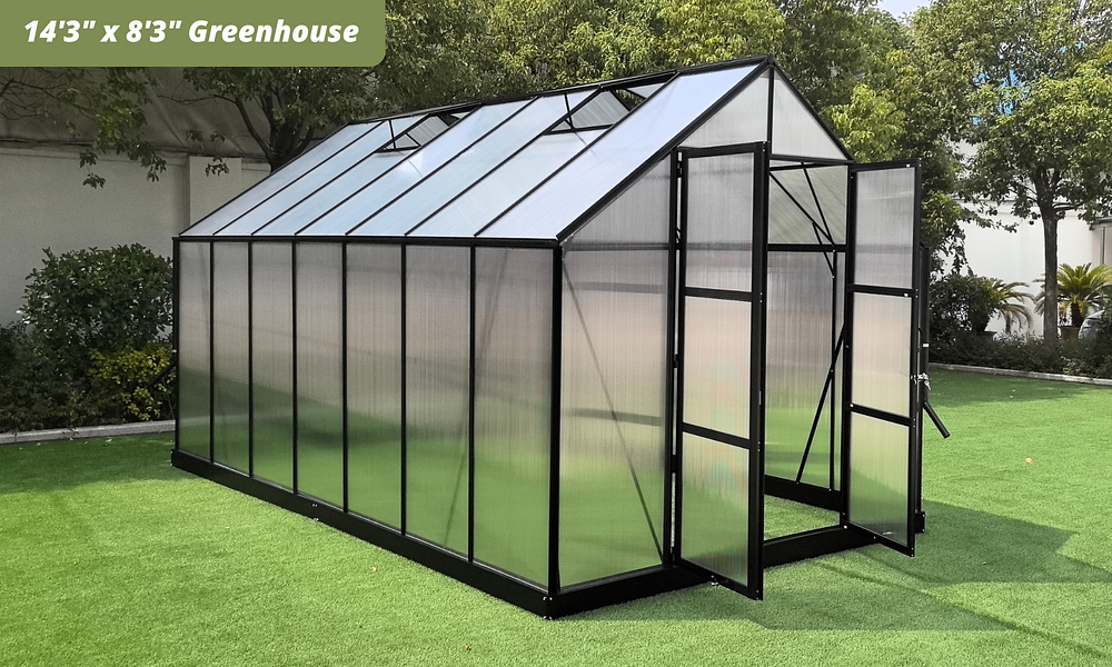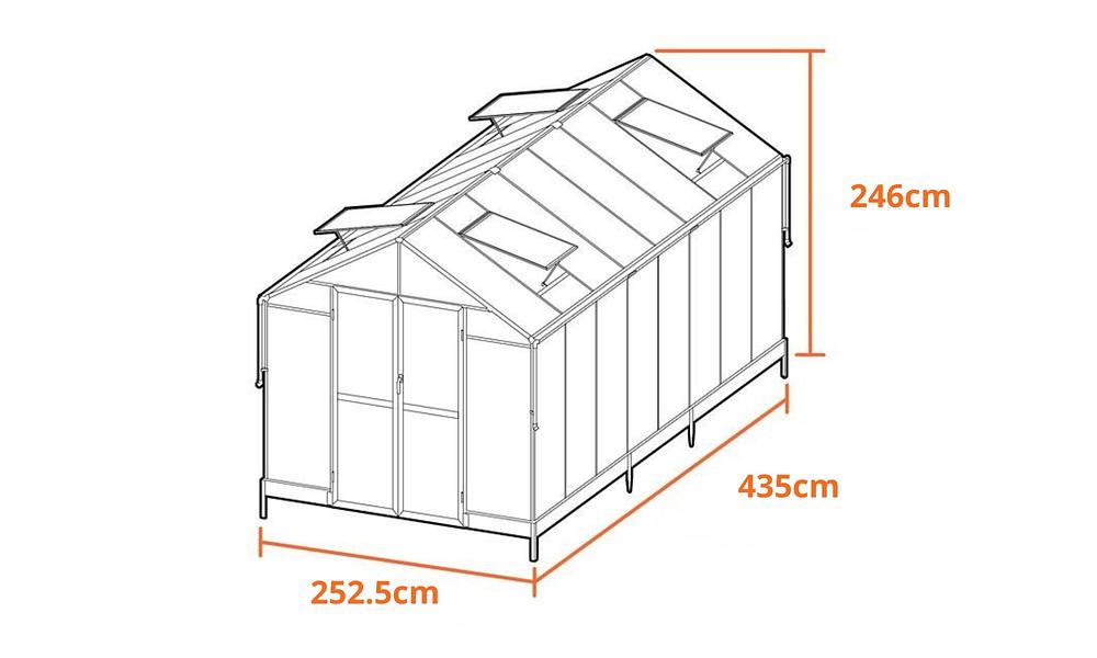 The premium greenhouse, measuring 4.35m x 2.5m x 2.46m, is our largest size within the Eden Premium Greenhouse Range, it offers a sanctuary for your plants, providing an optimal environment for growth and cultivation. Crafted with superior materials and meticulous attention to detail, this greenhouse combines functionality with aesthetic appeal.