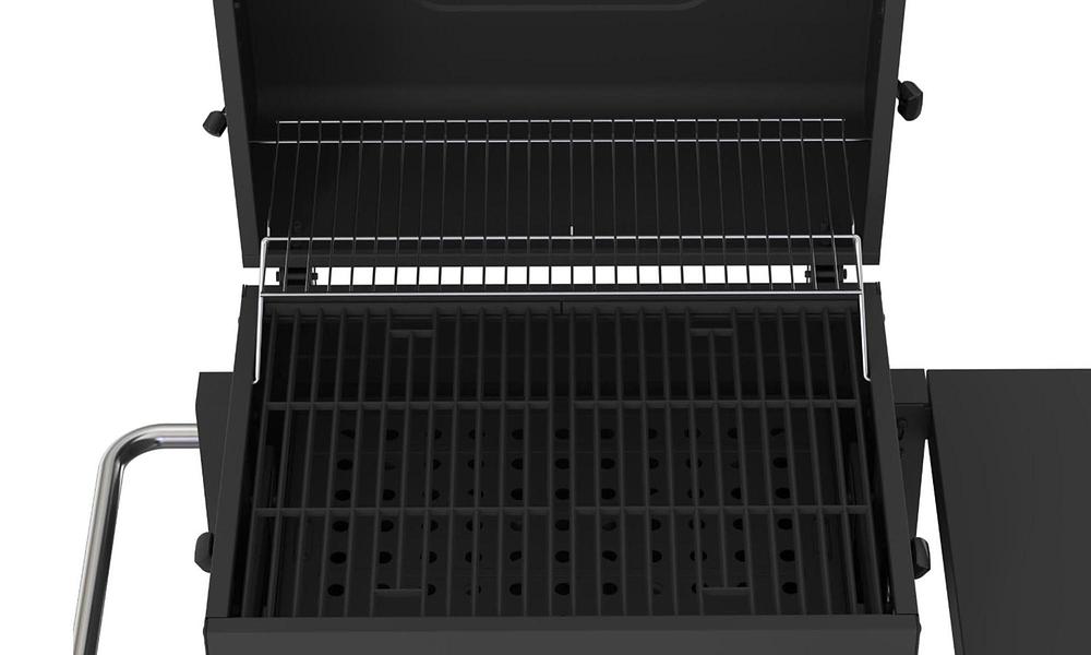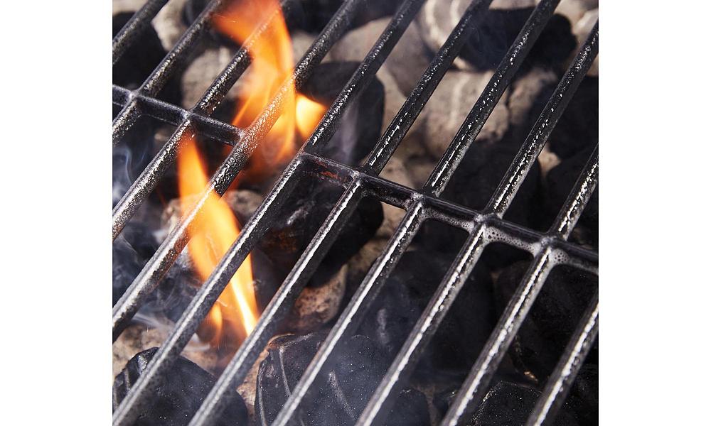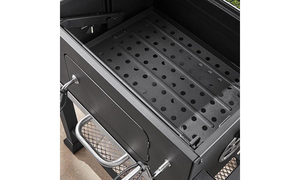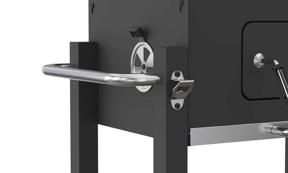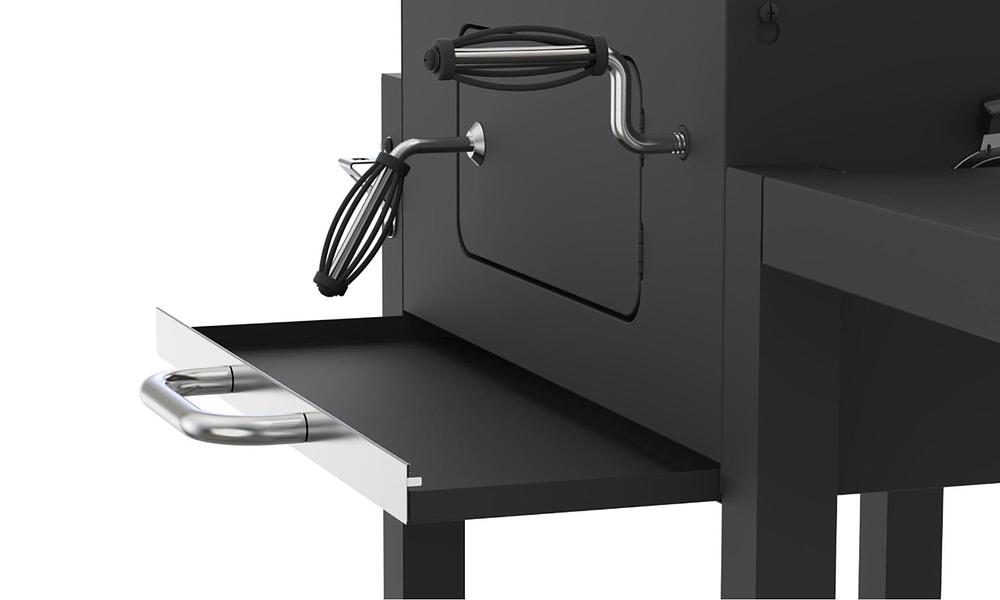 - Adjust charcoal pan height with crank to customise cooking temperatures