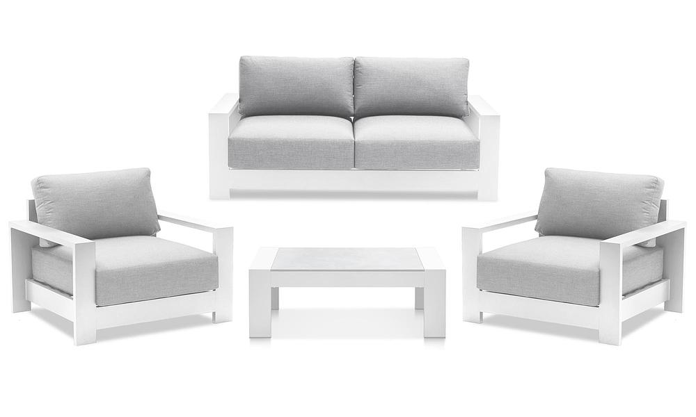 The Gio 4 Seater Sofa Set is your ticket to the ultimate in relaxation and entertainment for your family and guests! The low, wide, aluminium frame, deep squabs and resort-aesthetic, converge for endless moments of leisure. The Gio range truly is a winner!