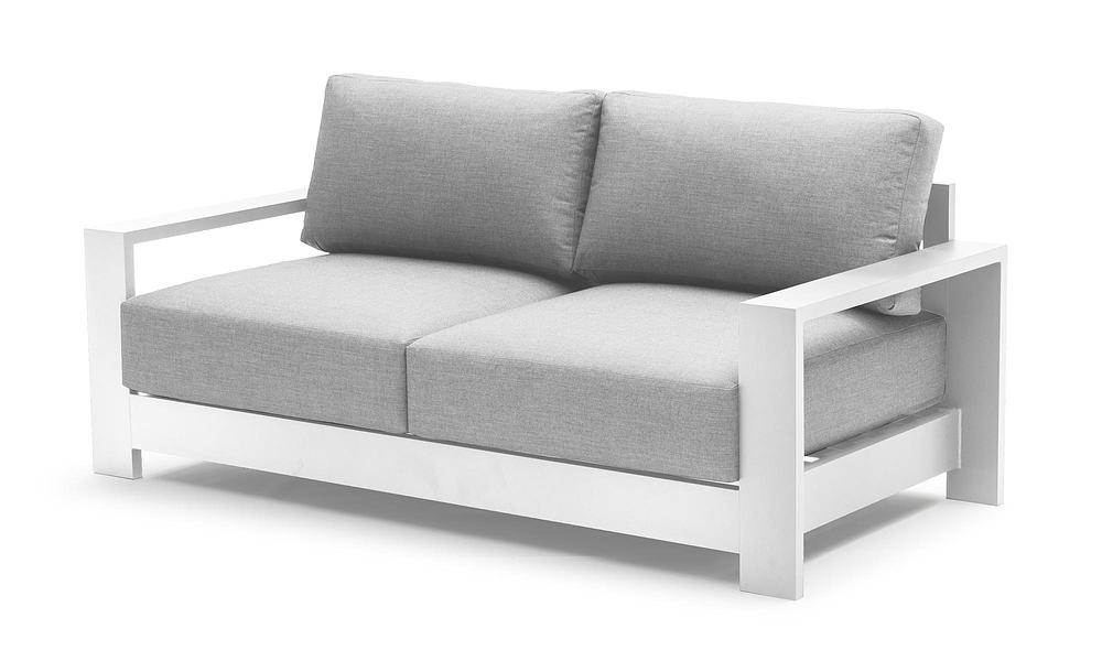 - White Frame / Light Grey Cushions
