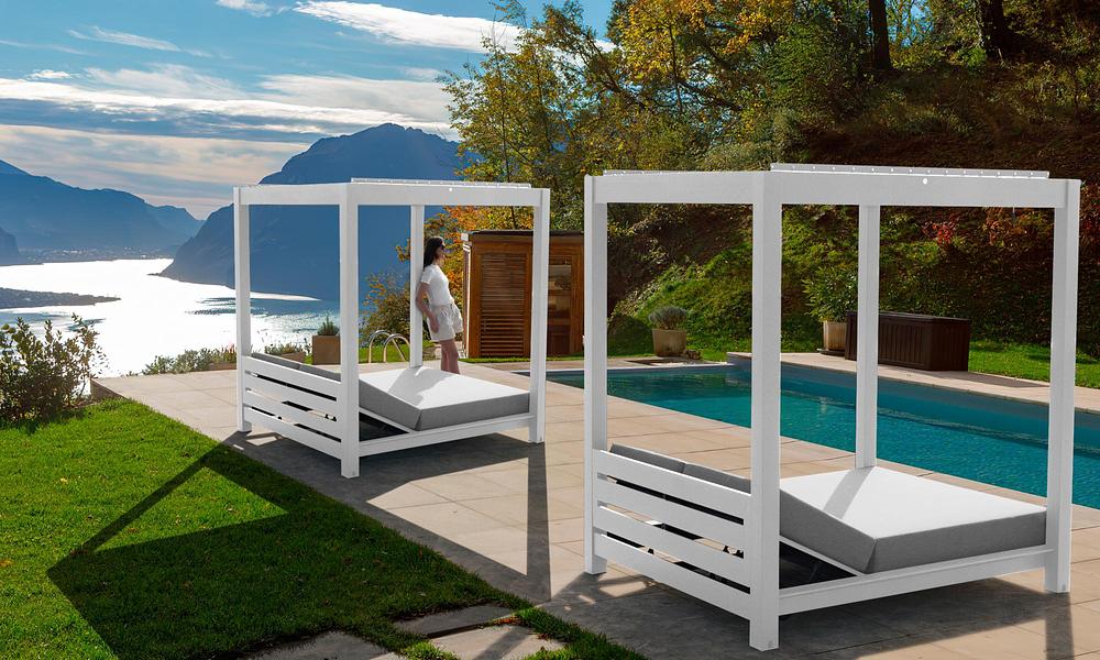 The Gio Luxury Cabana is your one-way ticket to an instant vacation without leaving you looking like a lobster! Imagine a day bed that's not just a piece of furniture, but a portal to a beach club paradise. We're talking about a level of relaxation so extreme that you'll forget what country you're in! This luxury cabana has louvres that elegantly adjust at your discretion, allowing you to bask in the sunlight like the sun-soaked superstar you are or create enough shade to keep you cool while you perfect your sunglasses game! Gone are the days of squinting at your phone screen, now you can tan and look into the distance and pretend your Jennifer Lopez!