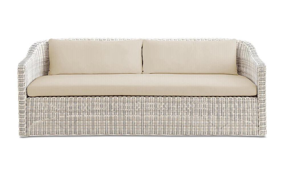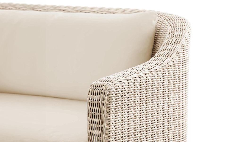 With an aluminium powder-coated frame and all-weather resin wicker, the Hampshire Wicker Sofa Set is built to withstand the elements while maintaining its luxurious appearance. The UV-resistant fabric and removable cushion covers ensure that your outdoor haven remains stylish and inviting year after year.
