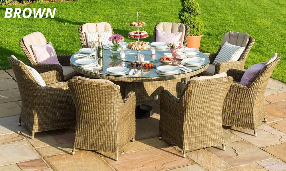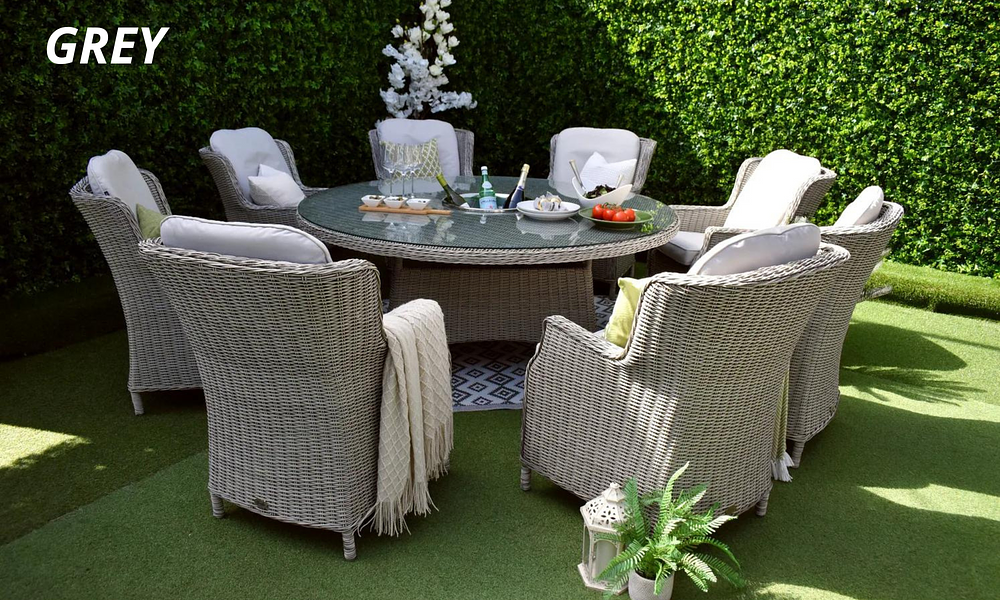 - 180 cm Table Set with 8 Chairs: Available in Brown or Grey