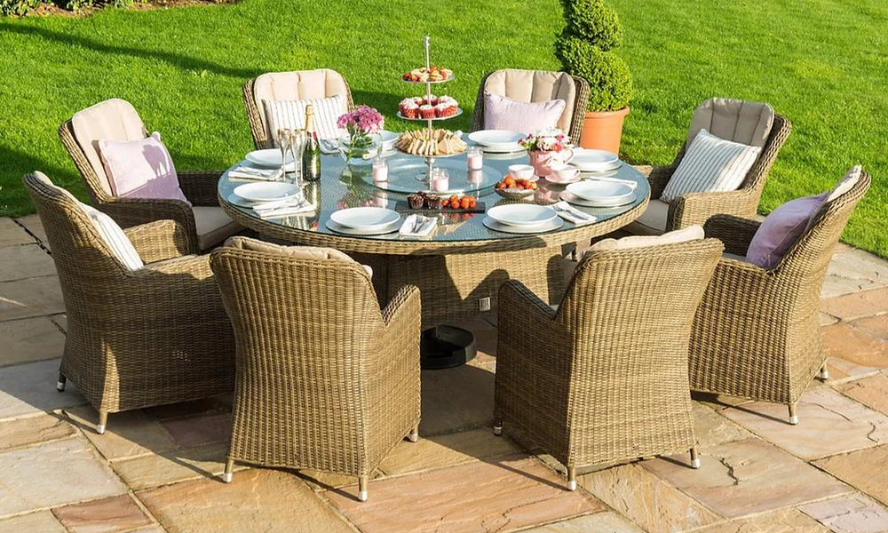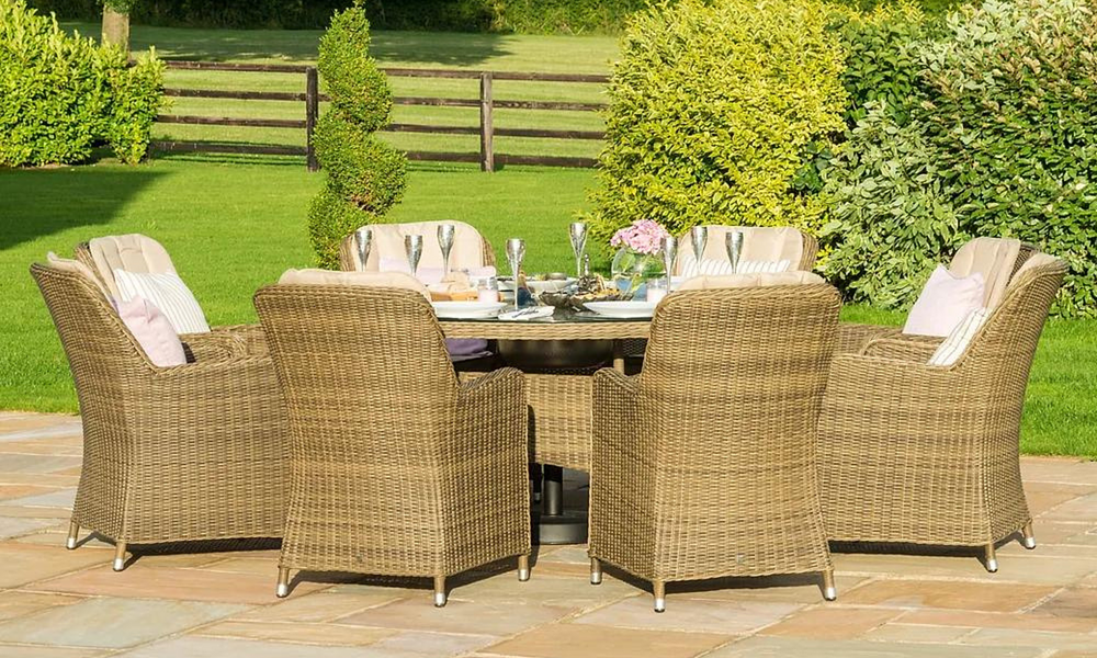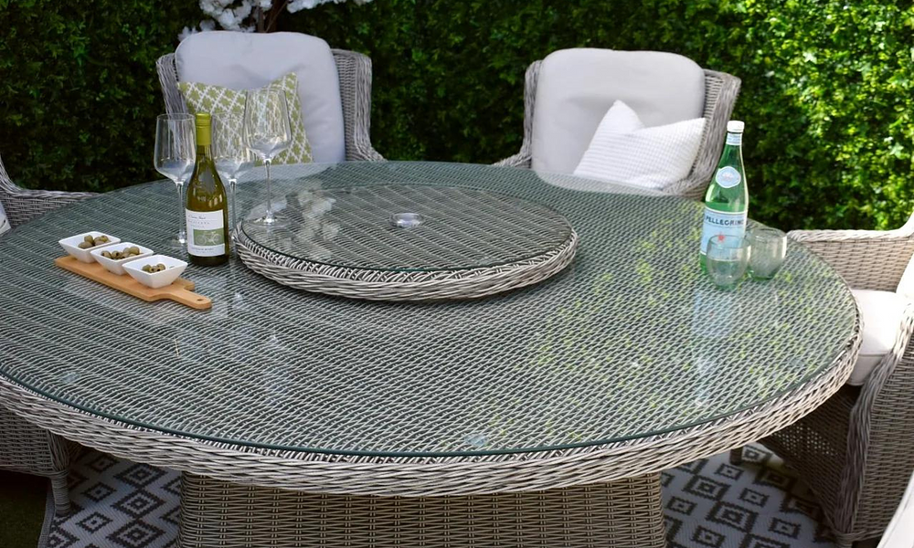 With its combination of size options, UV-resistant materials, and stylish wicker design, the Harper Dining Set is a great fit for any outdoor dining space.