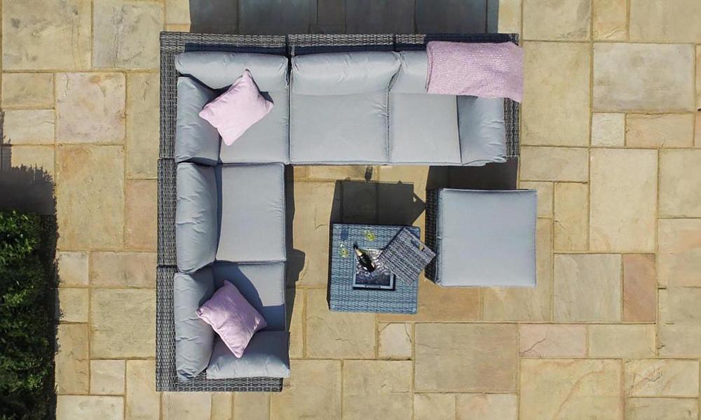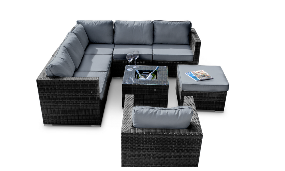 The Kingsley Sofa Set is all about laid-back luxury for your outdoor space. This stylish set includes a roomy two-seat sofa, a cosy corner sofa, a handy footstool, and a chic table with a built-in ice bucket, perfect for chilling drinks on a sunny day. With its versatile design and comfortable cushions, Kingsley is the perfect spot to relax, catch up with friends, or just soak up the sun!