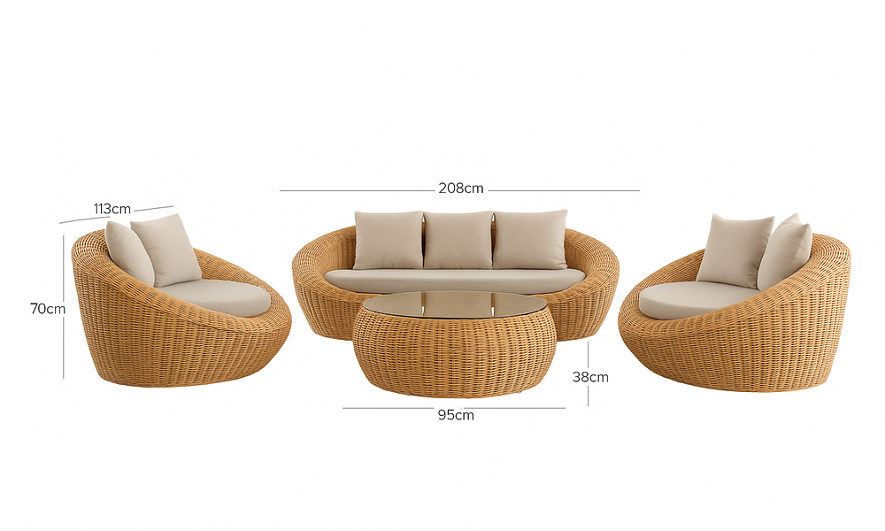 Wrapped in a chunky, cocoon-style rattan weave, the Laguna Set is all about resort style and relaxed living. Crafted from PU-coated rattan for extra durability, it brings coastal charm and modern sophistication to any outdoor space. Whether you're poolside, patio-lounging, or soaking up golden hour, the Laguna Set brings laid-back luxury to every outdoor moment.