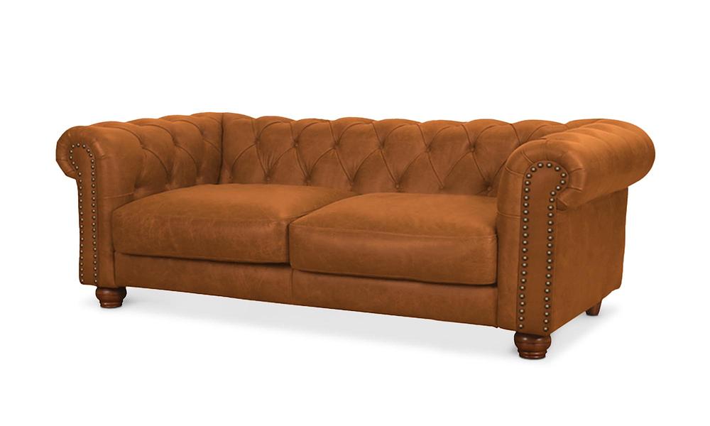 The Lancaster Sofa is adorned with the finest aniline Italian leather, showcasing a soft and supple texture that is characterised by rich colours, natural grain and durability. The Chesterfield design, famous for its distinctive deep button tufting and rolled arms, adds a touch of regal charm to any living space.