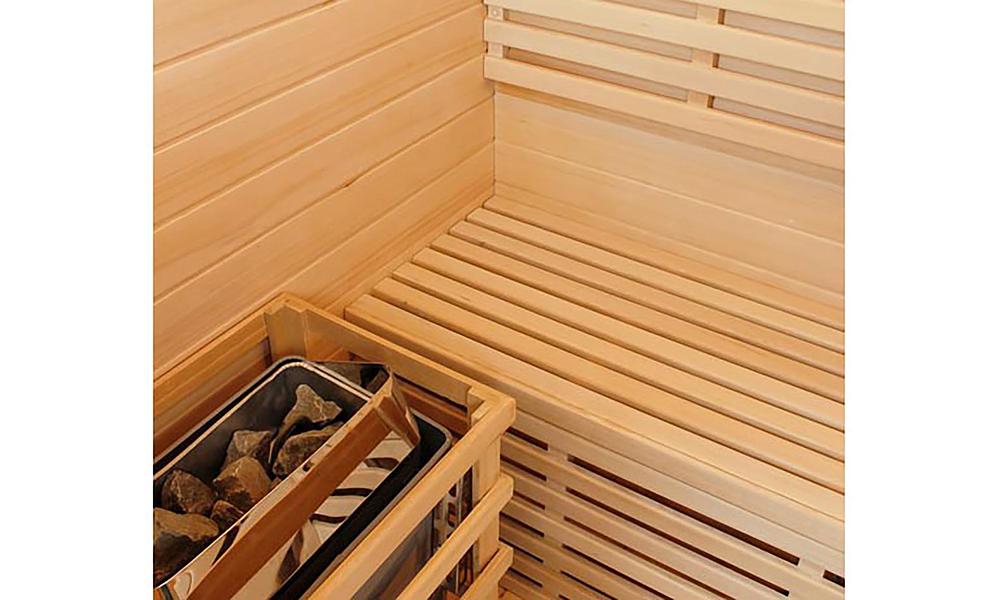 Hemlock wood is an ideal choice for saunas due to its exceptional durability, moisture resistance, and low-maintenance qualities. Its light hue and fine grain enhance the sauna's calming atmosphere, while its low resin content ensures even heat distribution and a comfortable, long-lasting performance.