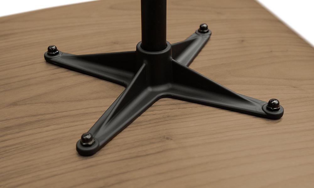 - Genuine black leather with 7 layer plywood base with walnut veneer, high-density sponge filling, and black aluminium legs.