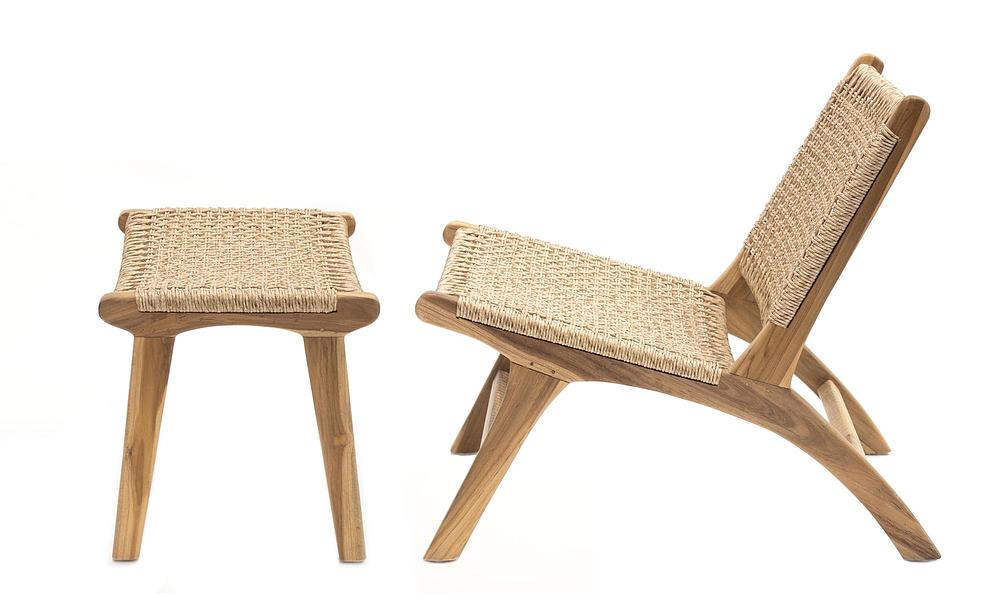 A trendy, exotic take on outdoor lounging, the RAYA Chair & Ottoman set brings a little slice of island paradise to your space. Inspired by laid-back coastal living, it features a wide, armless, low-profile design that feels modern and relaxed. Wrapped in handwoven synthetic wicker and set on a solid teak wood frame, it captures the charm of natural rattan with the added durability of being UV-resistant, weatherproof, and built to stay beautiful season after season.