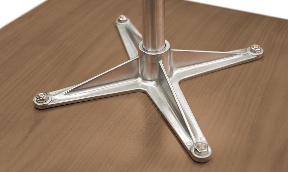 - Genuine black leather with 7 layer plywood base with walnut veneer, high-density sponge filling, and black aluminium legs.