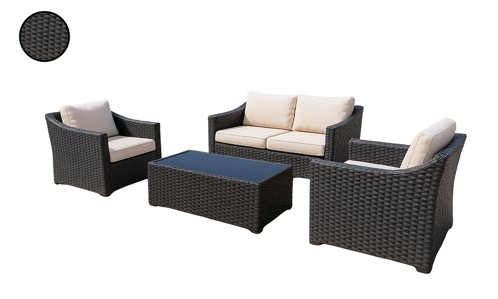 The Rolleston 4-Piece Outdoor Rattan Set is your go-to for relaxed outdoor living. Featuring two single chairs, a comfy double sofa, and a glass-topped coffee table, it has everything you need for lounging, entertaining, and making the most of your outdoor space.