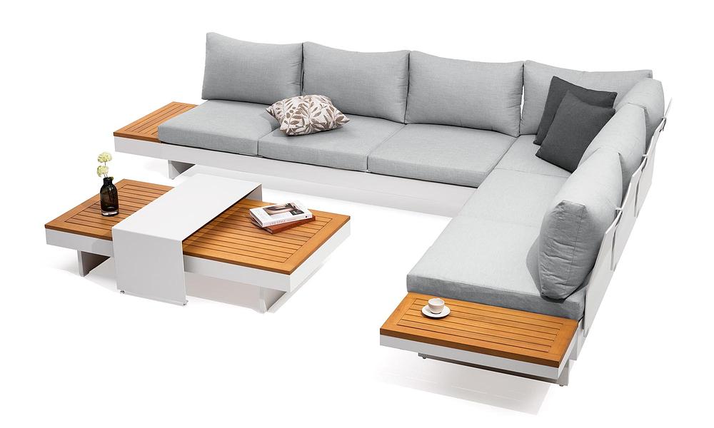 Make a huge style statement in your outdoor entertainment precinct, with our over-sized L-shaped sectional sofa set. With its chic industrial metal aesthetic, stylish foam cushions and matching bench-shaped coffee table, it’s big enough for a group to relax, chat and snack in absolute style.