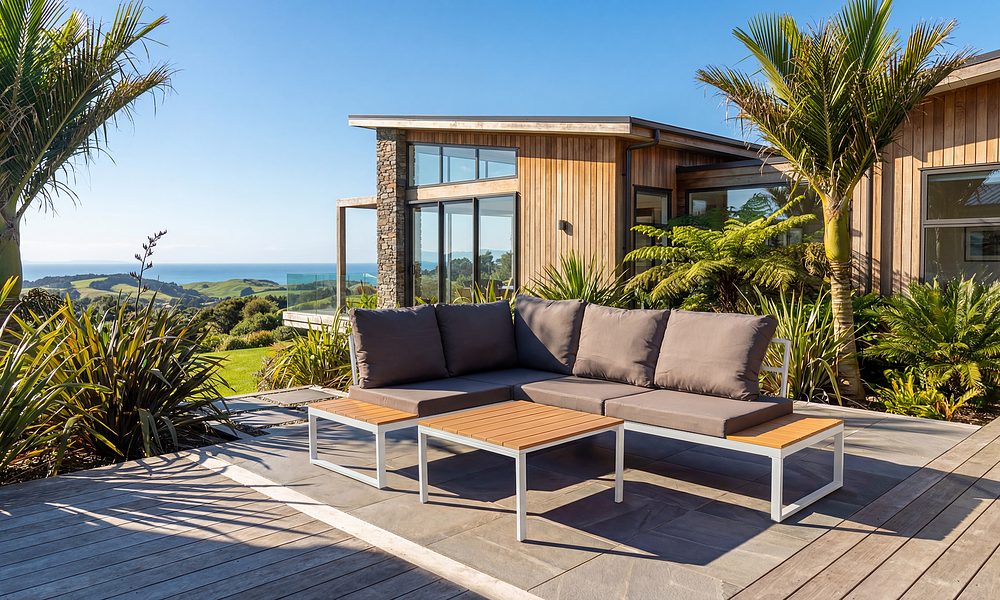 Built on a sturdy powder-coated aluminium frame with warm wood-look side tables, Santo brings the perfect mix of modern style and laid-back luxury. Topped with plush cushions and paired with a matching coffee table, it’s your all-in-one setup for serious outdoor lounging. The question is which colour will you pick?