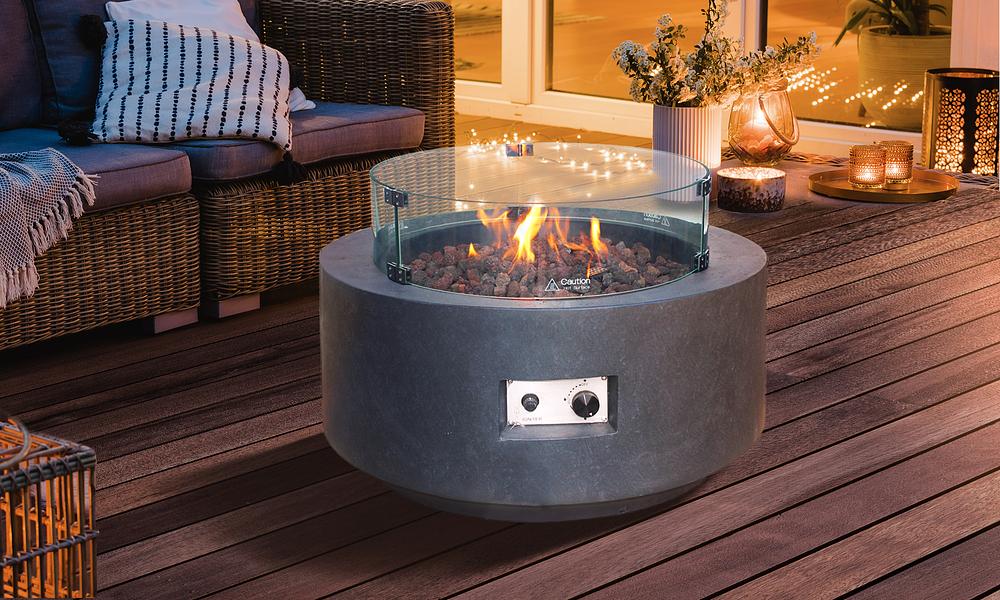 These are not cheap made fire pits, the bases are made from superior Glassfibre Reinforced Concrete and the burner, pan & ring are made from a high quality 304 stainless steel so you know this is the real deal. Tempered glass wind guards are also included to help keep flames protected from the wind and of course little fingers.