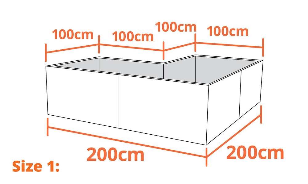 Size 1 Tall: 2m x 2m x 1m x 1m x 1m x 1m (70cm H) – $1,299
