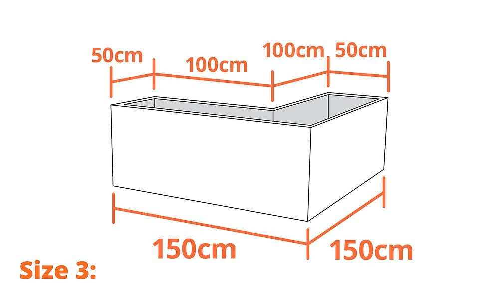 Size 3 Short: 1.5m x 1.5m x 0.5m x 1m x 1m x 0.5m (40cm H) – $449