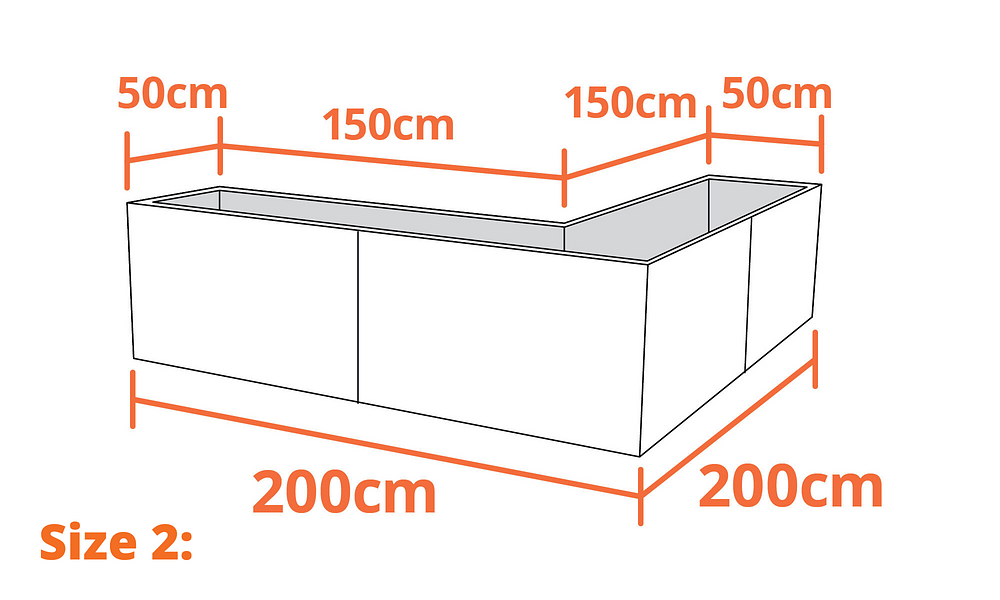 Size 2 Short: 2m x 2m x 0.5m x 1.5m x 1.5m x 0.5m (40cm H) – $599