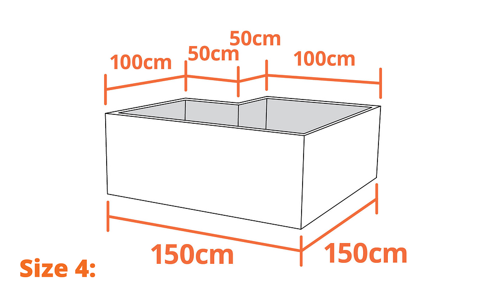 Size 4 Short: 1.5m x 1.5m x 1m x 0.5m x 0.5m x 1m (40cm H) – $449