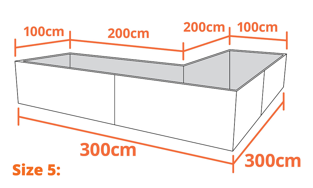 Size 5 Short: 3m x 3m x 1m x 2m x 2m x 1m (40cm H) – $899