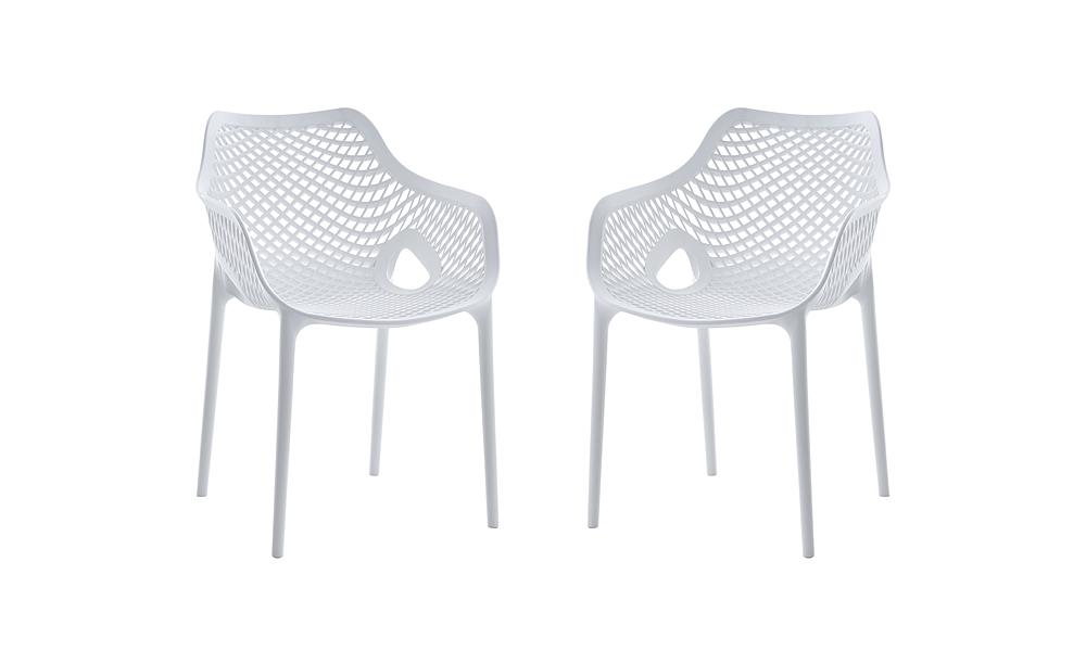 Sold in sets of 1 or 2 chairs, these are made completely from polypropylene UV-protected plastic meaning they are lightweight and cleverly designed to stack away for space-saving and storage. The solid, wide, one-piece design incorporates a large comfortable seat complete with drainage holes to stop rainwater pooling.
