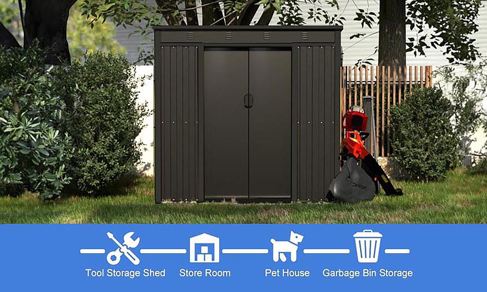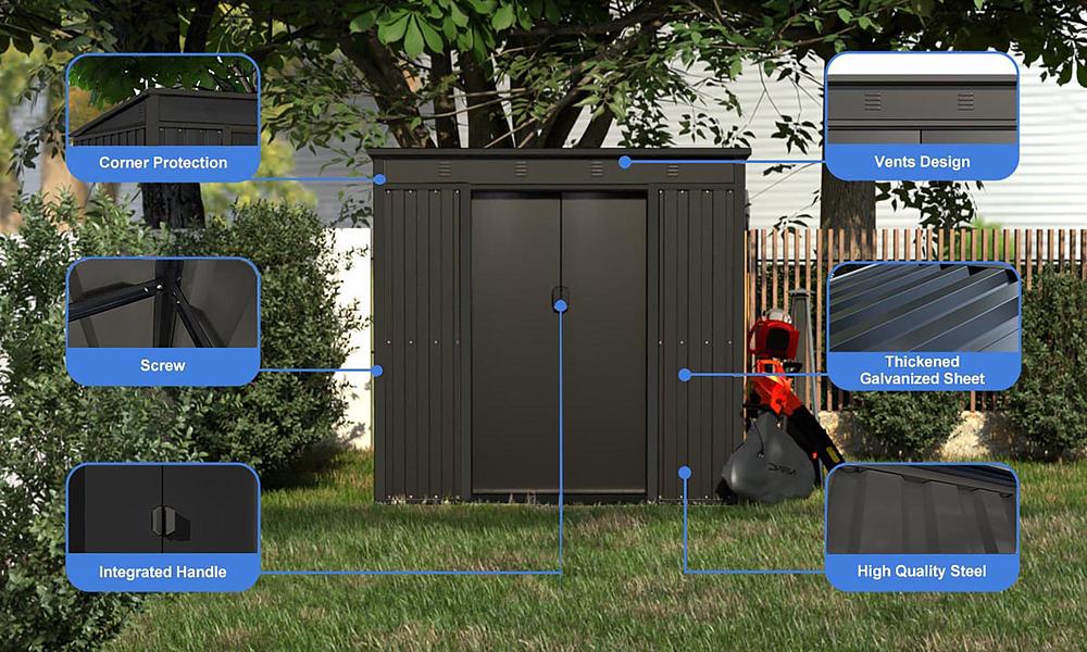 Our garden sheds are tough to the core and made from galvanised steel panels and frames finished off with a protective powder coated finish for long-lasting good looks - always important! With a ton of practical uses, easy sliding-door access, and secure locking, this Single Slope Garden Storage Shed with a 2.093 sqm interior is the slick storage solution your heart has always yearned for.