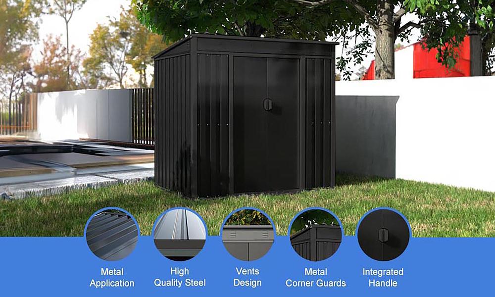 Our garden sheds are tough to the core and made from galvanised steel panels and frames finished off with a protective powder coated finish for long-lasting good looks - always important! With a ton of practical uses, easy sliding-door access, and secure locking, this Single Slope Garden Storage Shed with a 2.093 sqm interior is the slick storage solution your heart has always yearned for.