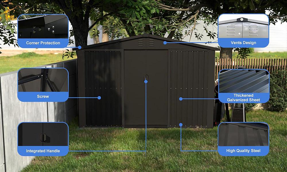- Ventilation vents prevent moisture inside the shed